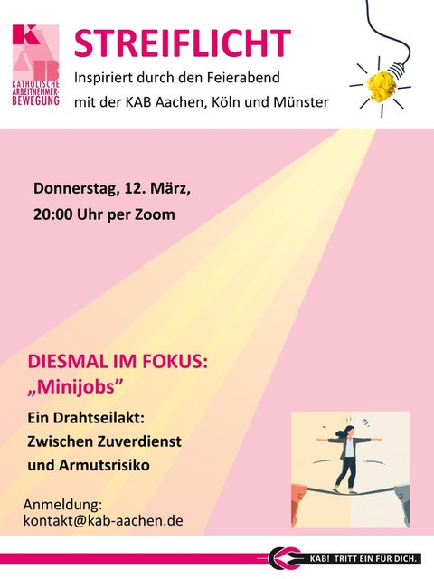 Eine Anmeldung für die Zoomteilnahme ist unter kontakt@kab-aachen.de erforderlich.